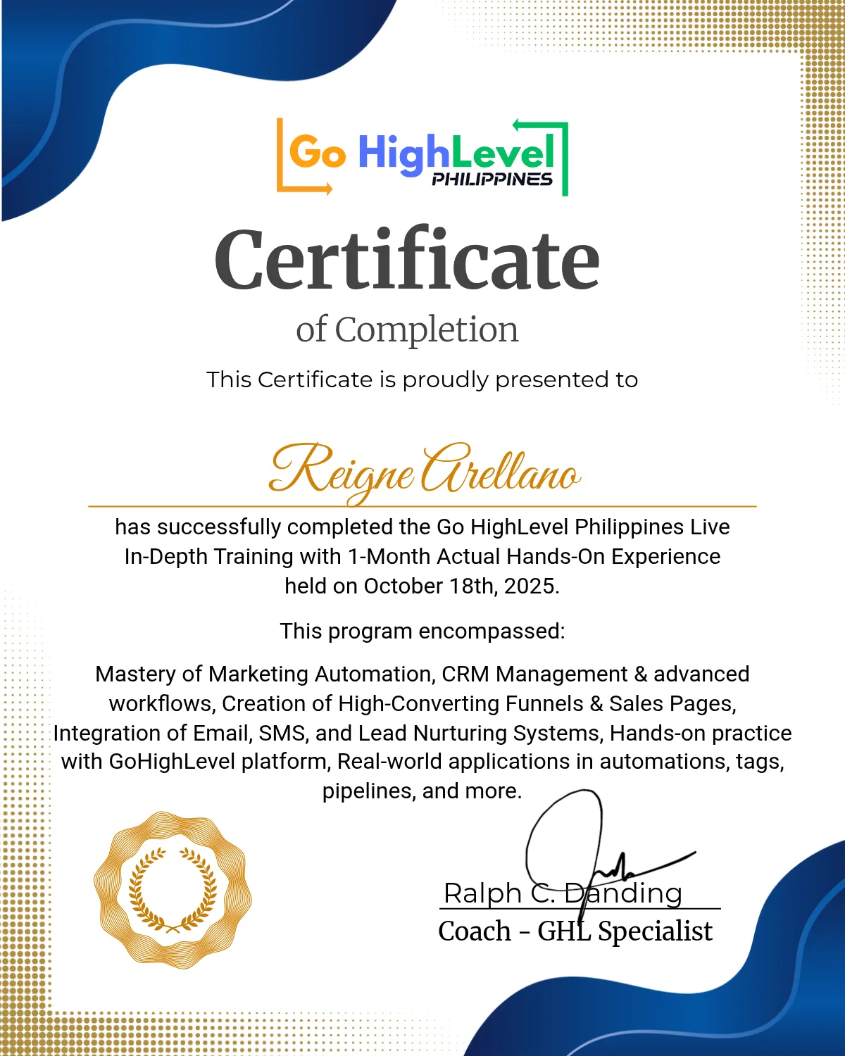 I am a Go High Level specialist dedicated to helping you grow and manage your business with ease. From building automated workflows to optimizing funnels, CRM systems, and client communication.